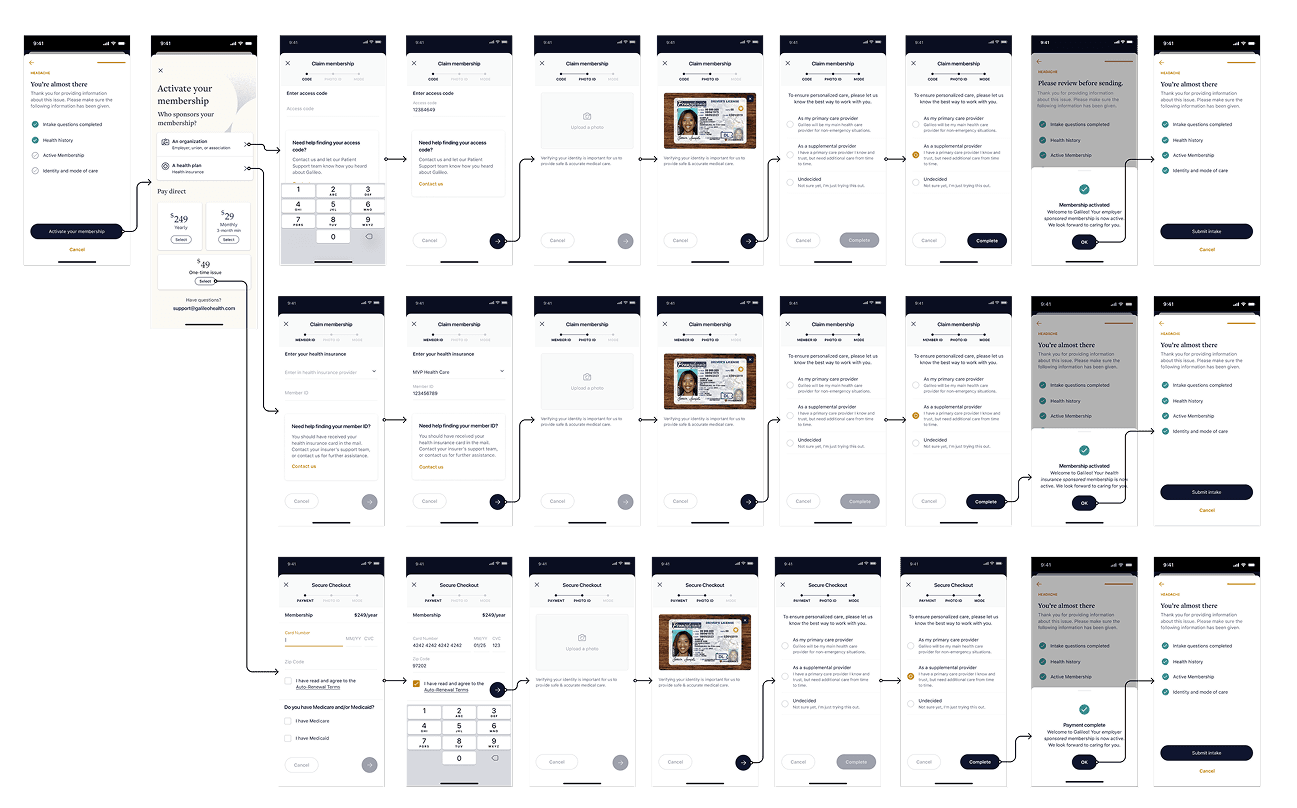 By rethinking the onboarding experience across multiple sponsor funnels and care models, I helped Galileo create a holistic entry that was extensible, clinically sound, and operationally scalable. The work streamlined enrollment, reduced support burden, and laid the foundation for a modular care platform adaptable to enterprise, direct-to-consumer, and partner growth.
